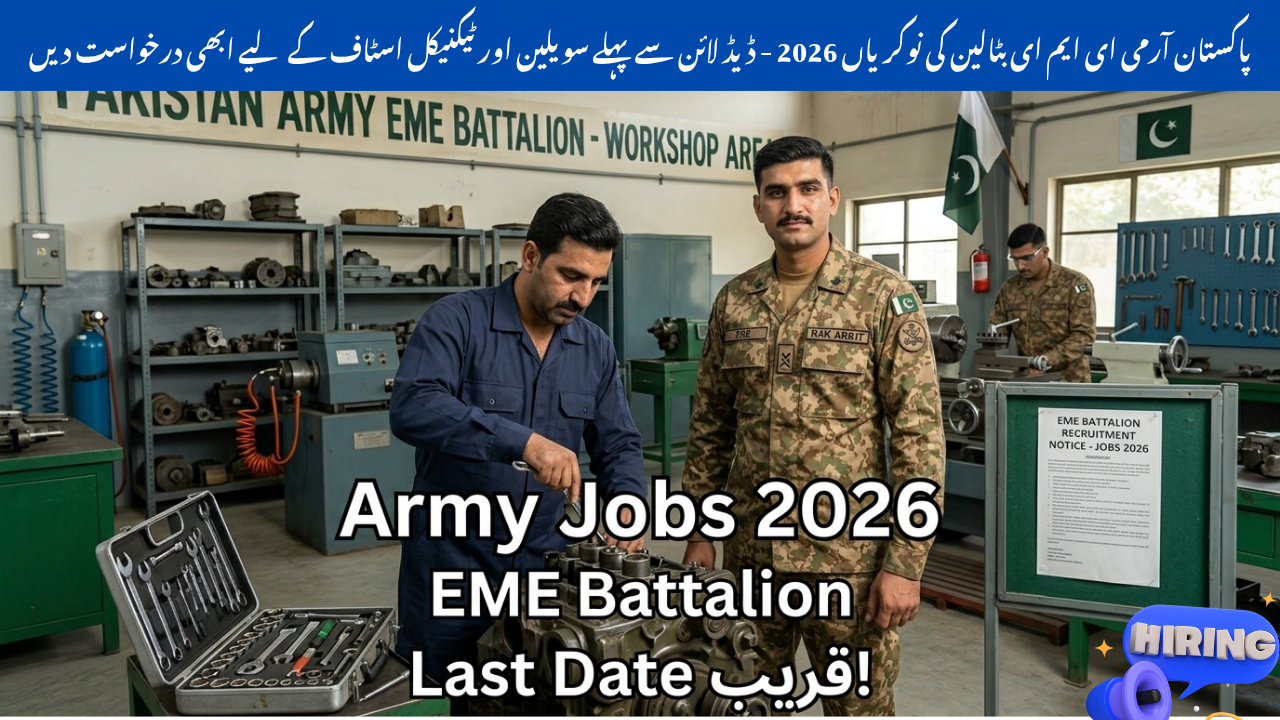 Pakistan Army EME Battalion Jobs 2026 – Civilian & Technical Staff The Pakistan Army has announced new job opportunities in the EME (Electrical and Mechanical Engineering) Battalion for 2026. These positions are open for civilian and technical staff across various trades, offering a stable career with competitive benefits. Candidates from across Pakistan are encouraged to … Read more